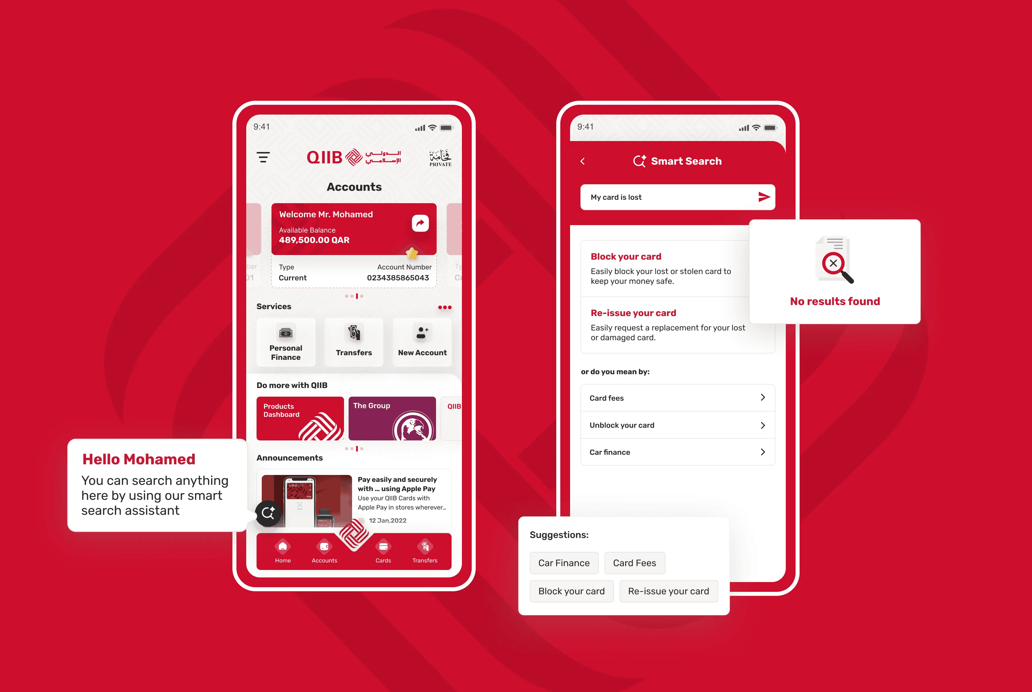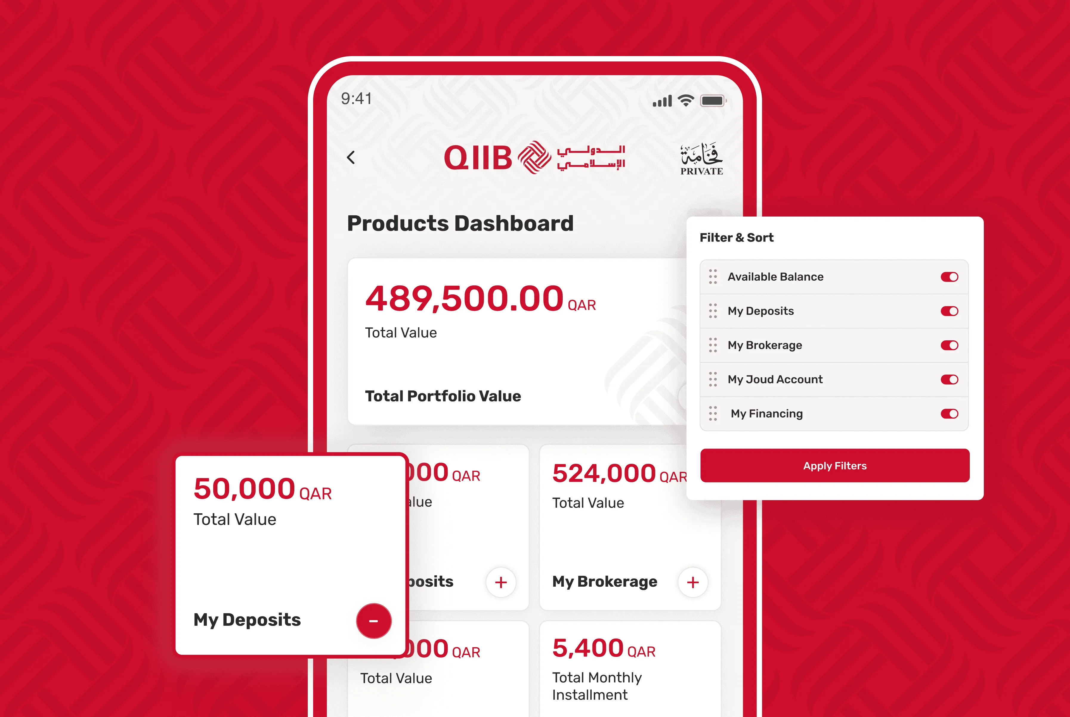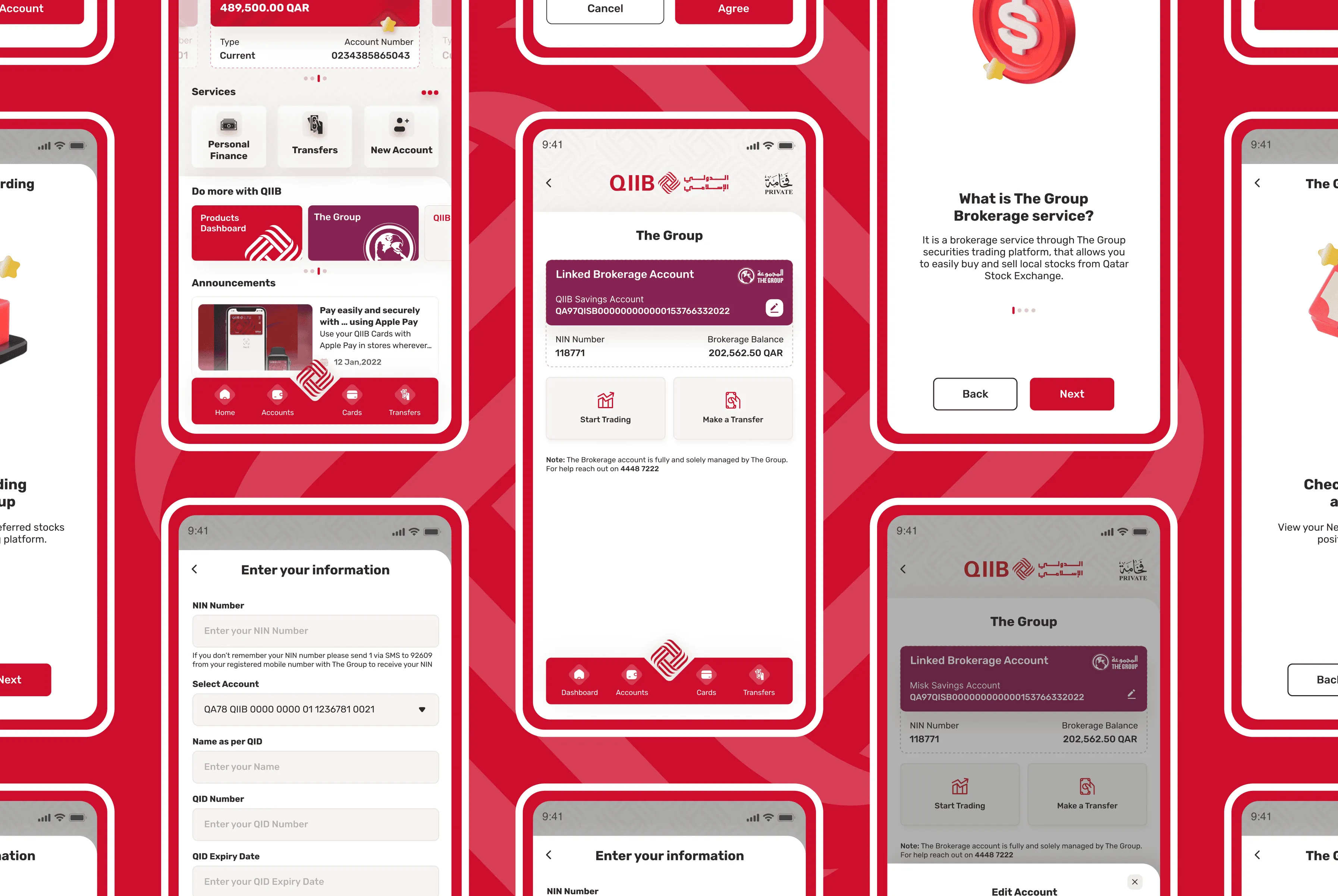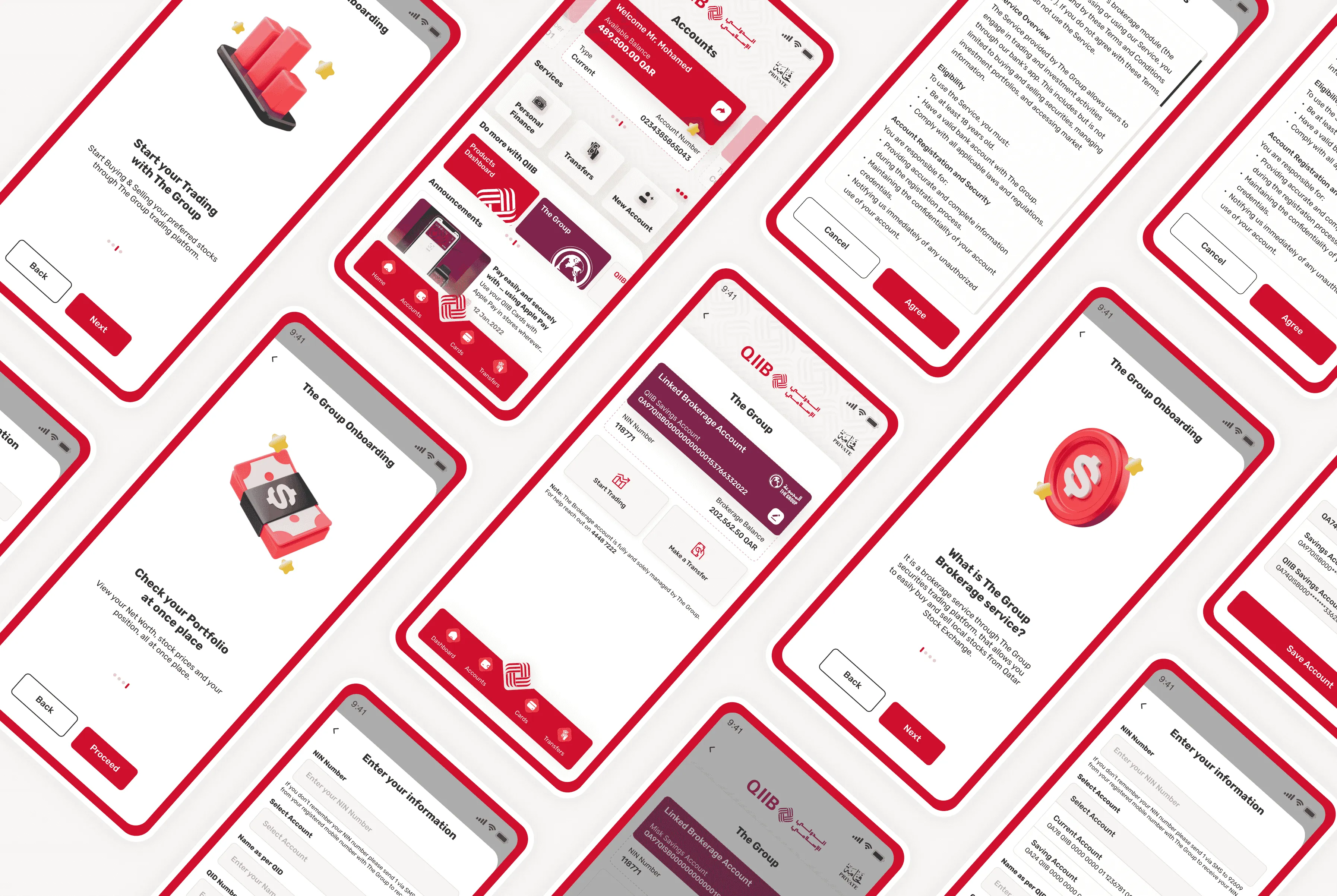QIIB approached us to design a mobile banking app that combines functionality with intuitive user experience. We crafted a comprehensive UX/UI solution featuring a products dashboard, smart search, brokerage integration, and seamless account management flows.