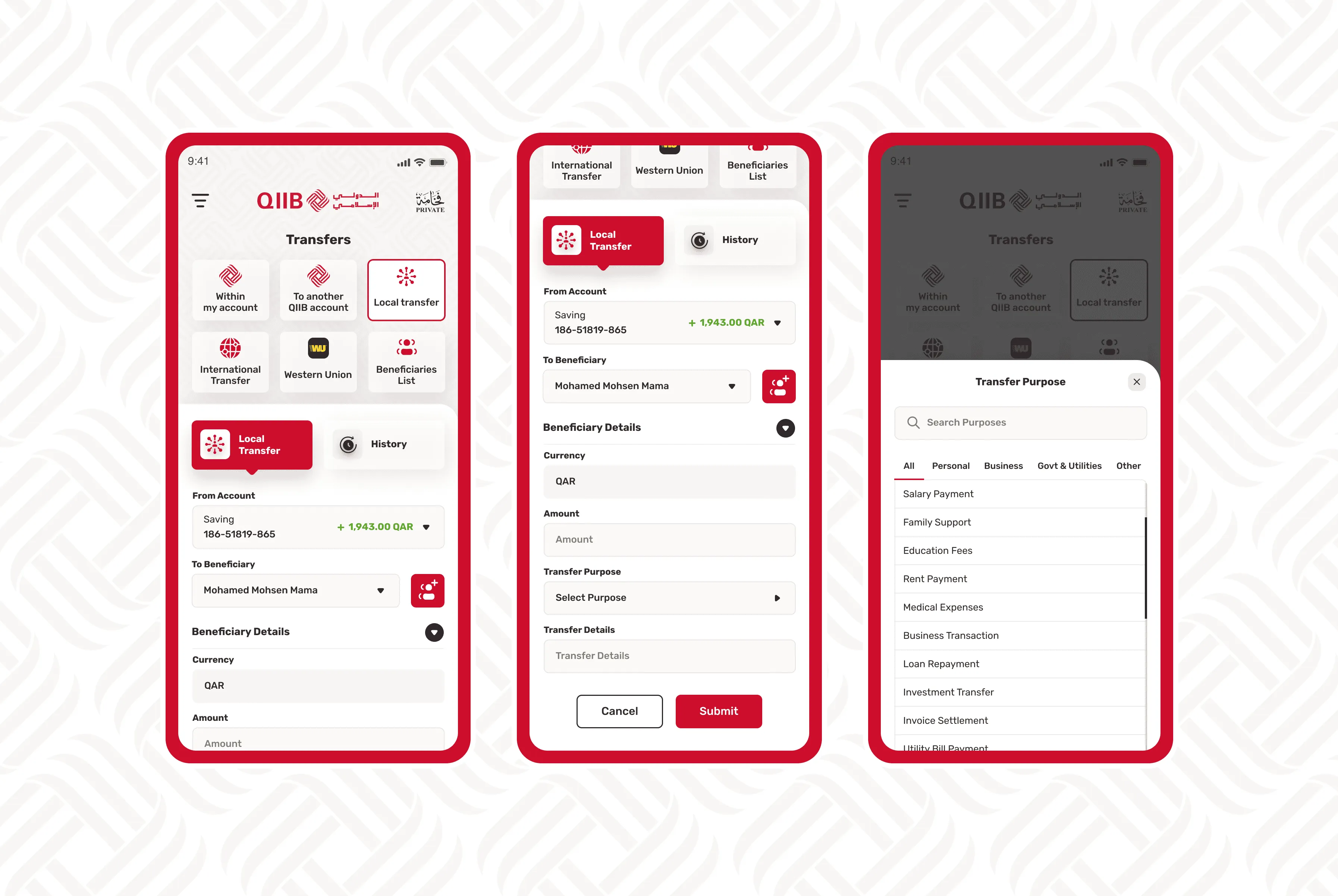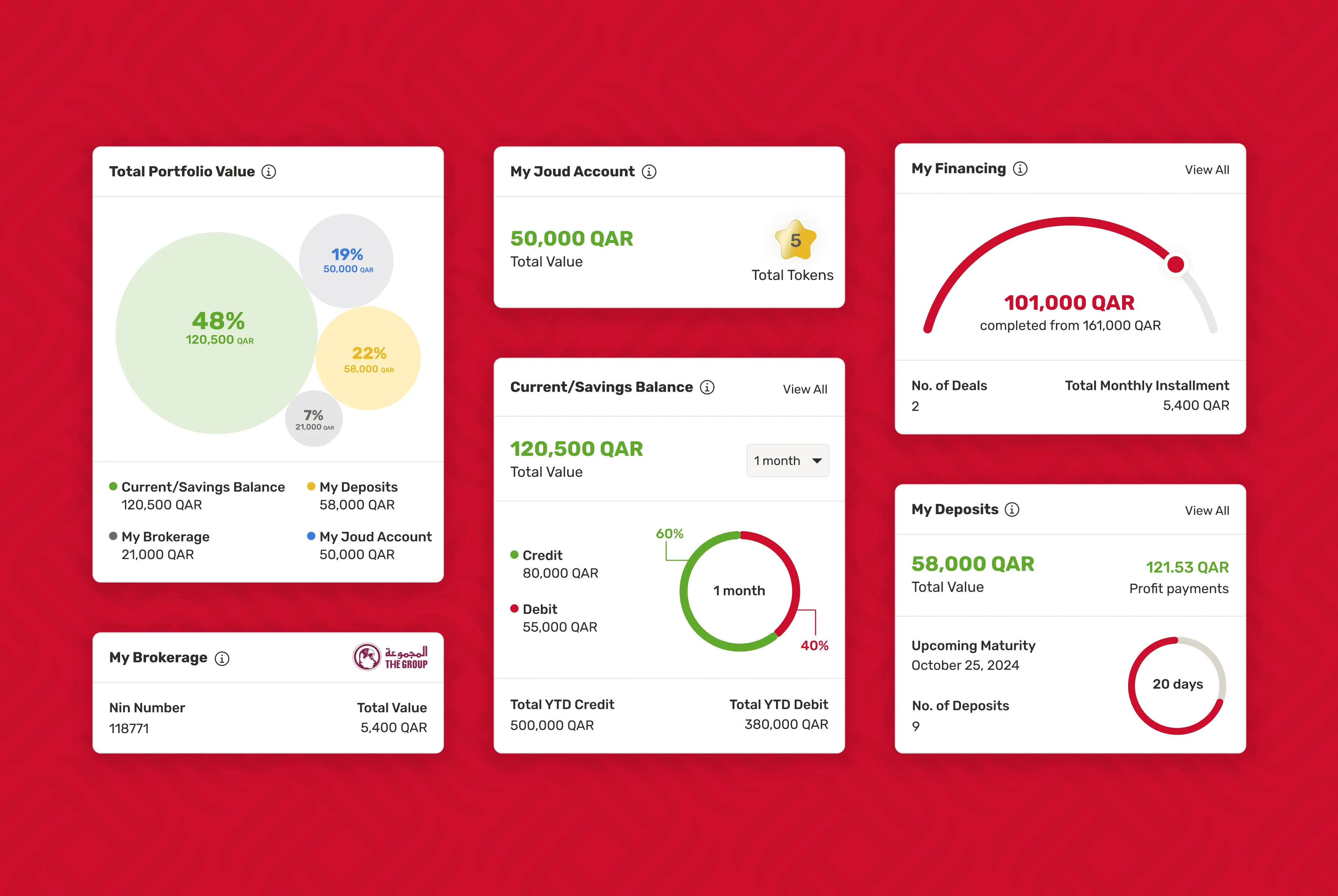 The design balanced QIIB's premium brand identity with accessibility and ease of use, delivering a banking experience that empowers customers to manage their finances confidently. From dashboards to onboarding flows, every screen was designed for clarity, performance, and trust.