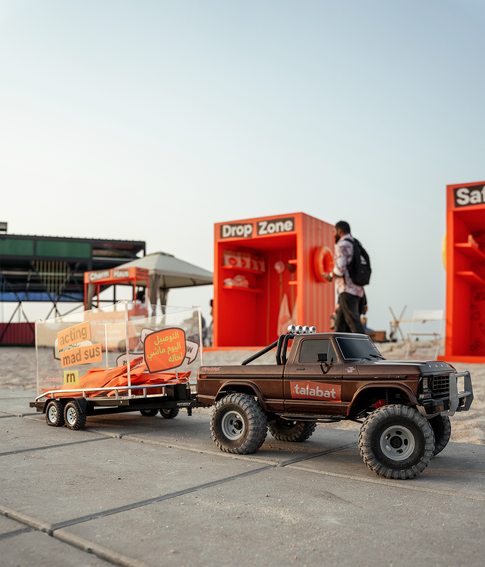For Talabat's 10-day summer campaign at 974 Beach, we built a full beachfront experience from the ground up — transforming sand into a structured, high-energy brand playground. Modular activation zones featured interactive games, charm stations, ice plunge challenges, and surprise deliveries via remote-control Talabat cars, engineered to spark movement and discovery.