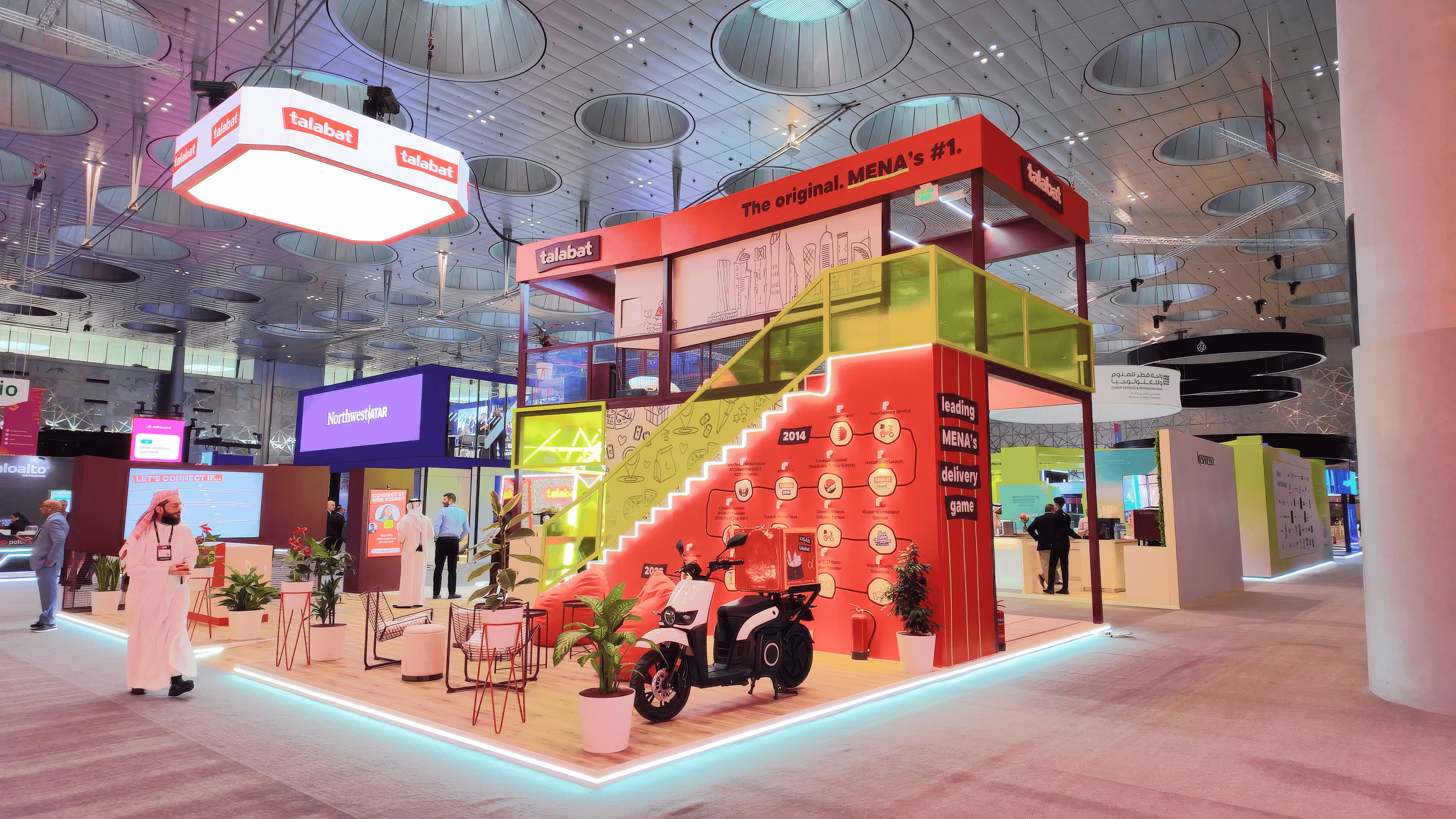 As a platinum sponsor at Web Summit Qatar 2025, Talabat partnered with Descifer to craft a 12x9m experiential booth designed for connection and impact. The space featured a VIP networking lounge, snack bar, and interactive digital installations including a “sticky note” networking wall, tech quiz, and upside-down photo room. Across the four-day summit, the booth hosted C-suite talks, media interactions, and B2B networking sessions, positioning Talabat as a technology-driven brand leading conversations at the intersection of innovation and digital commerce.